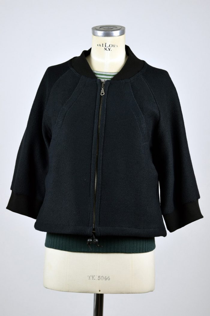 JACKET TOKYO | 7007 colour: black material: 100% cotton sizes: s/m/l sex: women price: 169.00 € Sweatjacke aus weichfallender Baumwolle inside-out // gedoppelte Front mit seitlichen Einschubtaschen // Durchgehender Metall-Reißverschluss in Altsilber // 3/4 Raglanärmel mit Cotton-Rippbündchen an den Ärmelenden // mit einer justierbaren Durchziehkordel als Taillenbund