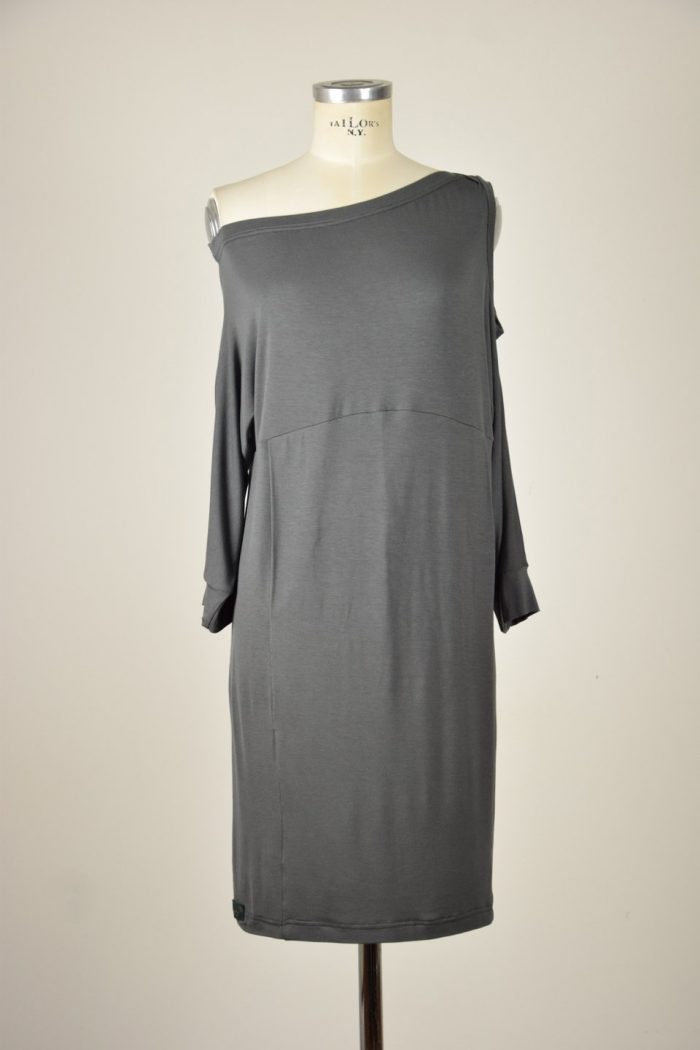 GAMEDRESS | 5002c colour: grey material: 100% viscose sizes: s/m/l sex: women price: 138 € 2in1: Sommerlich-leichtes Kleid aus Viscose mit Cut-Outs // asymmetrischer Halsausschnitt und Cut-Outs an einer Schulterpartie // Kleid endet über dem Knie // eingearbeitete und durchgehende Bauchtasche // 2in1: das Modell wird ein schulterfreies Sommerkleid, in dem man mit den Armen…