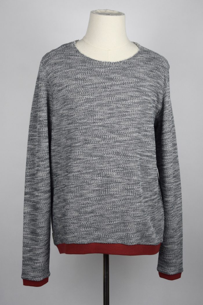 PULLOVER PAUL | 4004 colour: grey material: 23% wo/mo 43%wo 19%pl 15%pa sizes: s/m/l sex: men price: 148.00 € Flauschig- legerer Pullover aus anschmiegsamer Woll/Mohair-Mischung. // Material aus hochflorigem Woll/Mohair-Mix // Rundhals-Ausschnitt // Einsatz an Armen und auf der Front aus leicht gefilzten Blockstreifen in Cremeweiß/Dunkelblau // taubenblaue Baumwoll-Rippbündchen an Armen und Saum // Saum…
