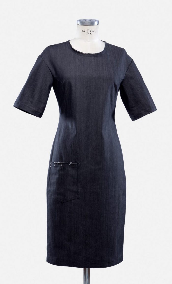 DRESS SABA | 8003 color: blue denim material: 78% cotton 20% polyamide 2% ea sizes: s/m/l sex: women Price: 168.00 € Elegantes Etuikleid mit krempelbaren Ärmeln und überschnittenen Schulterpartien // Offene Saumkanten an Ausschnitt und Tasche // Extralanger Reißverschluss im Rücken aufgesetzt // Tailliertes Jeanskleid für den urbanen Look