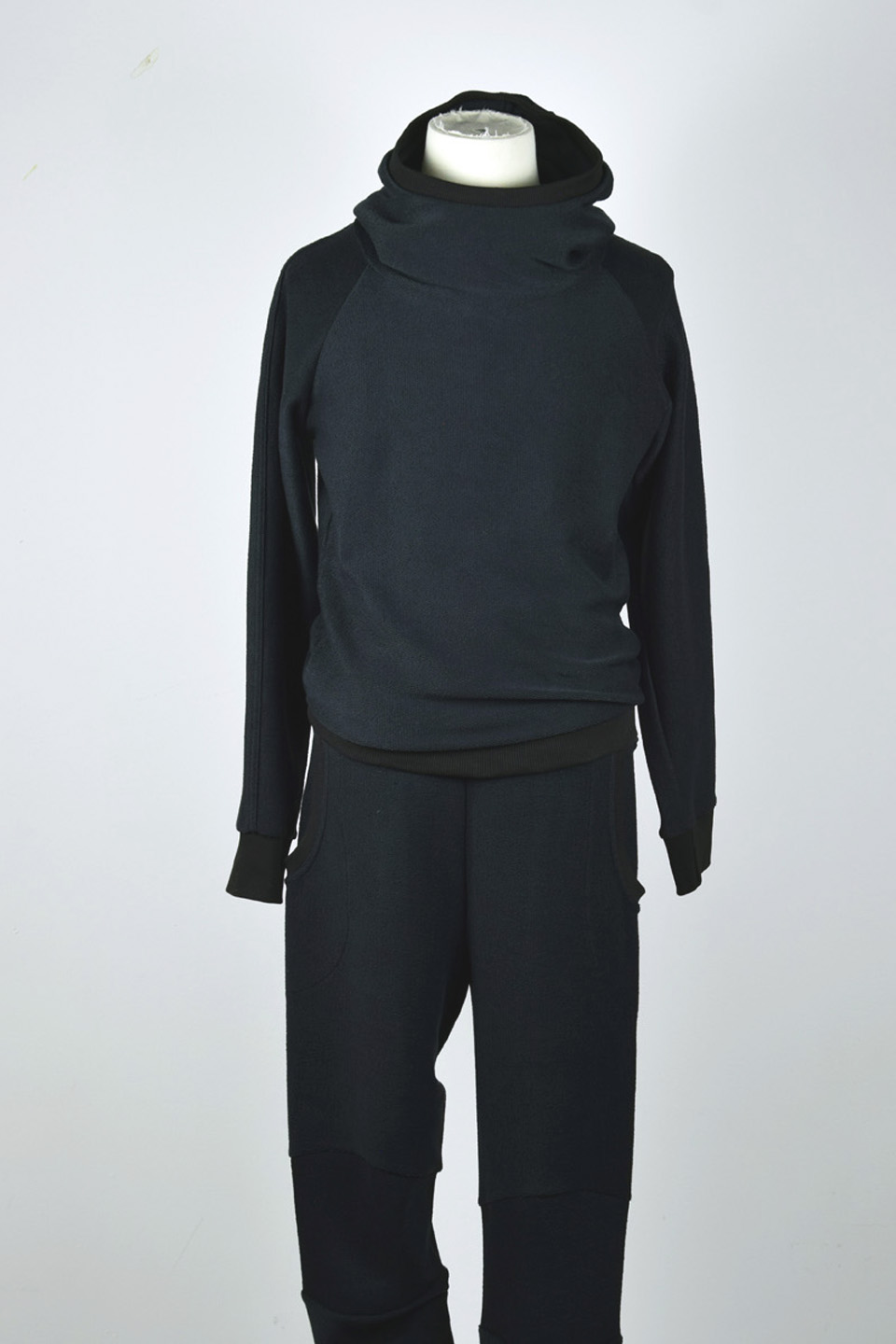 // Kapuze und Kragen gehen ineinander über und vereinen Design mit Funktionalität