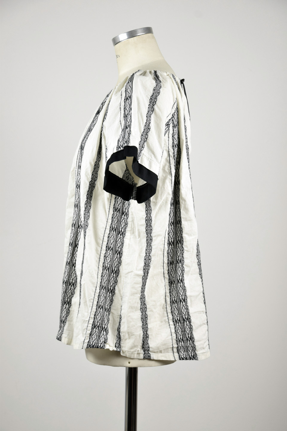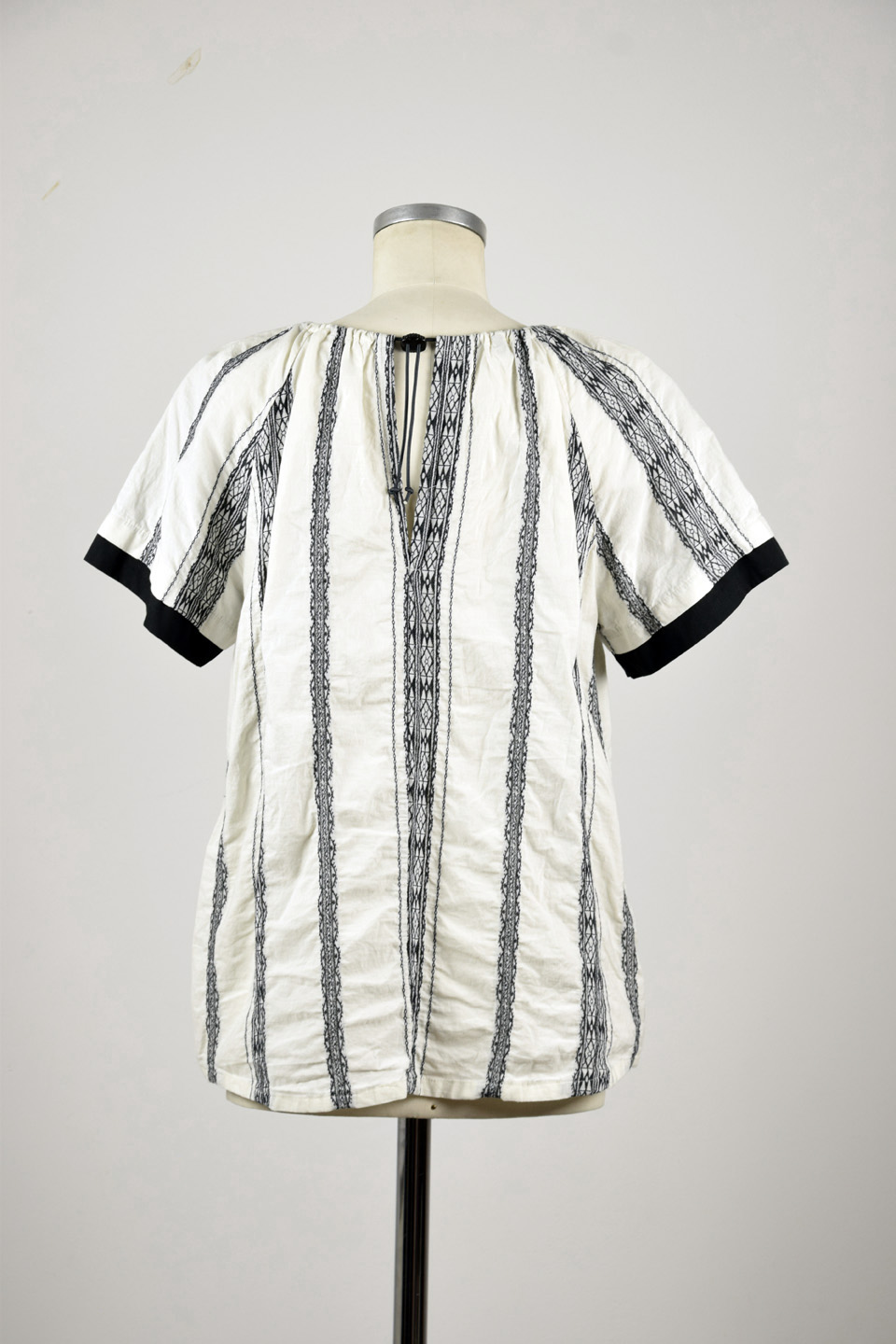 // Ausschnitt hinten mit Schlitz und Kordelstopper